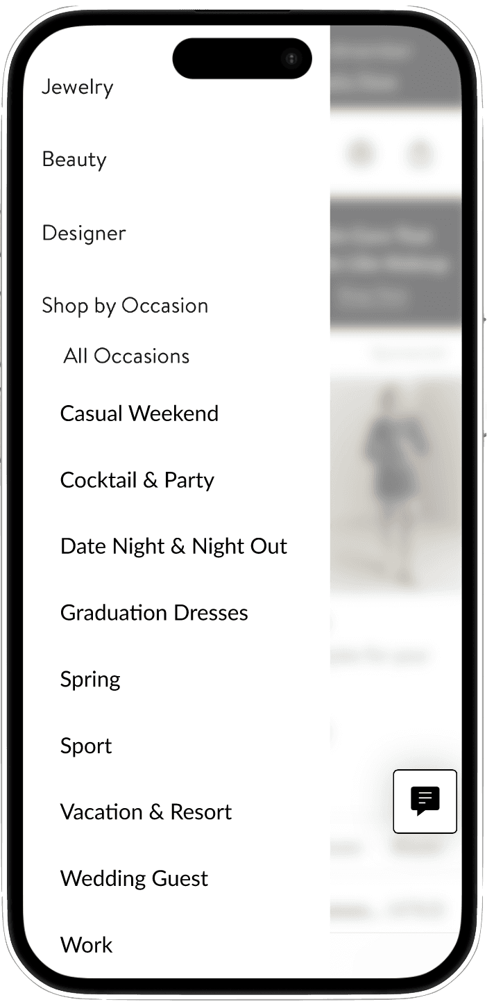 To match the shoppers' expectations, we recommended to include other occasions, in addition to the current ones, that align with their understanding of "occasions". Additionally, since most users immediately gave up after only seeing three occasions displayed in the hamburger menu, it's important to list additional occasions there to help the user realize there are other occasions they can browse through.
